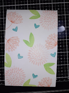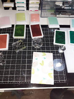 Cette carte, j'ai tamponné et mélangé avec de l'encre de pamplemousse sur les côtés de la carte, j'ai attendu que le premier lot de tamponnage sèche, puis je suis arrivée avec du Sorbet.