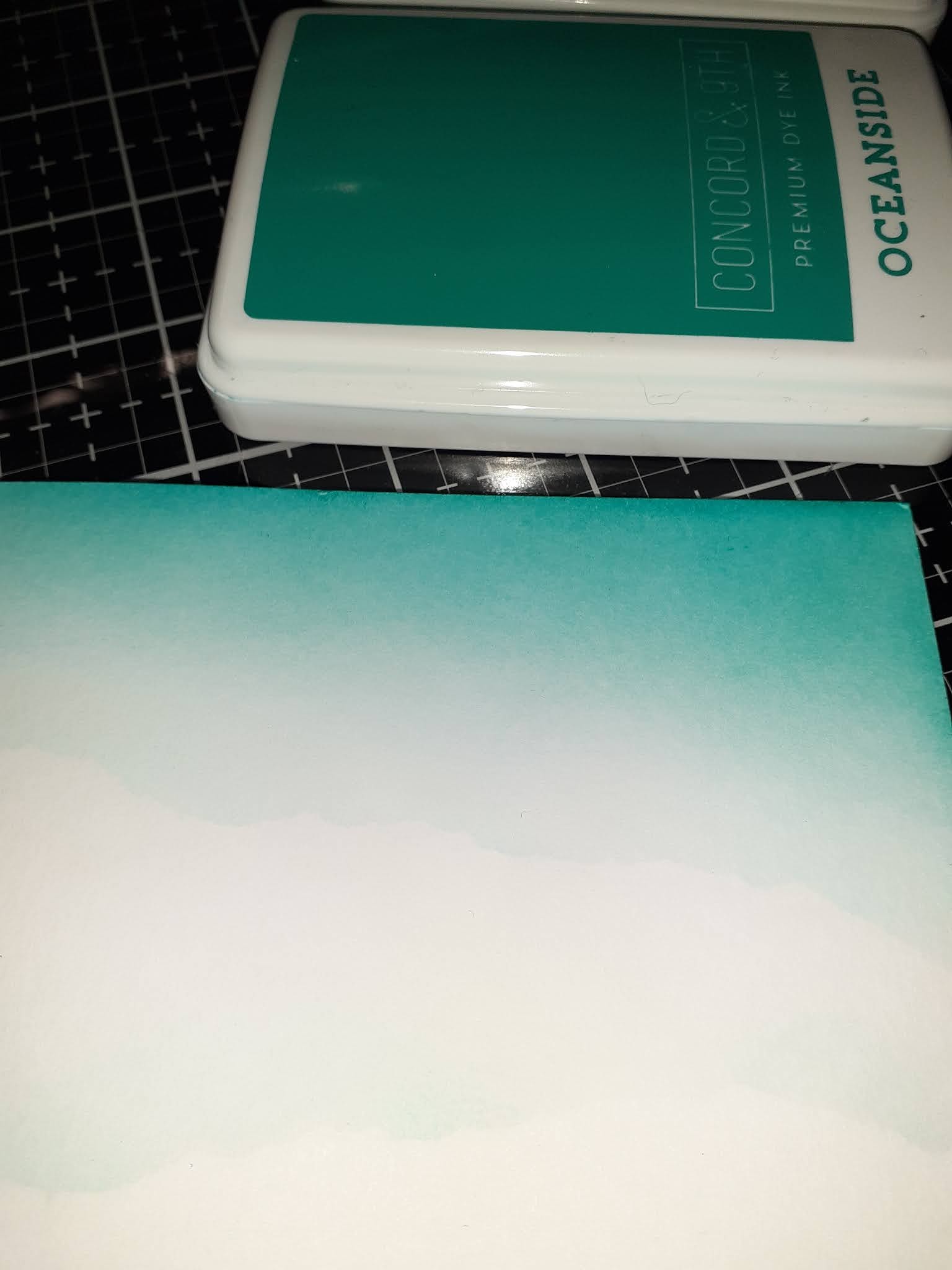 J'ai commencé avec l'encre aquarelle pour les congères et j'ai remonté la carte. Une fois en haut, j'ajoute l'encre Oceanside sur le bord de la carte. Apportez le ton plus sombre. J'ai utilisé la couleur d'encre Midnight pour le ciel nocturne.