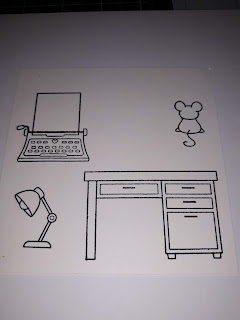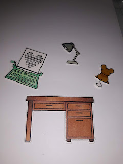 J'ai ensuite ajouté les découpes et soulevé le bureau ainsi que la souris sur des coussinets en mousse collants. À ce stade, j'allais mettre mon sentiment sur une bande au bas de la carte. Mais à la place, j'ai décidé de l'ajouter à la page de la machine à écrire car elle était plus belle.