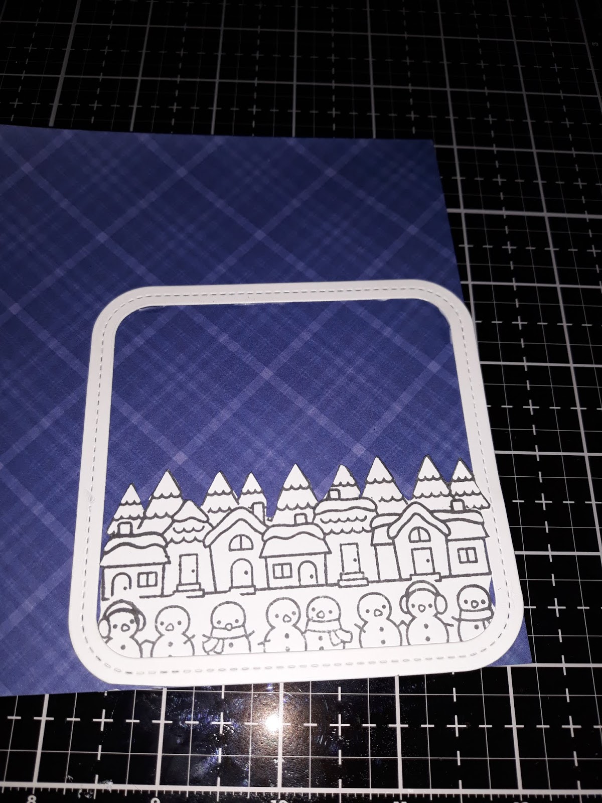 J’ai ensuite utilisé le bloc de papier Lawn Fawn Perfectly Plaid Chill. Choisir une feuille bleu foncé pour donner un aspect ciel nocturne.