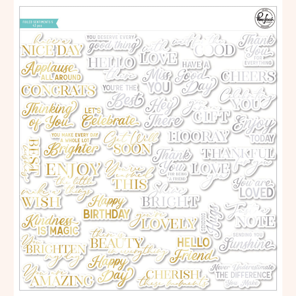 43 pièces. pack éphémère découpé sous forme de sentiments déjoués en or mat et en argent mat. Il existe des sentiments pour de nombreuses occasions, notamment un anniversaire, des encouragements, une amitié, un remerciement et bien plus encore ! Ce pack découpé est parfait pour les artisans qui souhaitent ajouter une touche déjouée à leur projet, mais qui n'ont pas de machine à déjouer. Il est également parfait pour créer en un temps record ou pour créer en masse. Les sentiments incluent une gamme de polices script, modernes et serif que les artisans attendent de Pinkfresh Studio.