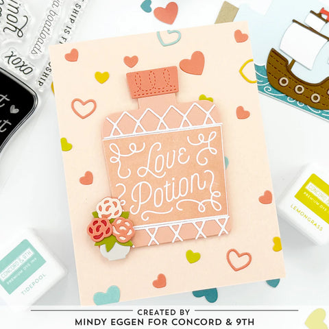 The Oceans & Potions Stamp Set pairs with the Oceans & Potions Dies to create spellbinding potions, classic messages in a bottle, and friendly ship-in-a-bottle scenes that are sure to bring heart and touch of wonder to your next project. 6” x 6”. 14 pieces.