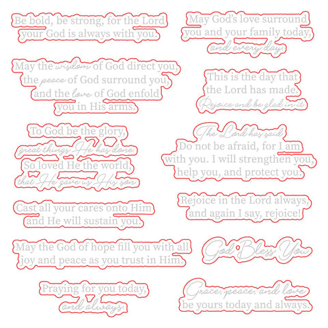 Add meaningful dimension to your faith-inspired creations with this 12-piece steel die set from the Inside Sentiments: God's Love collection! These expertly crafted dies coordinate beautifully with the matching stamp set (sold separately) and arrive pre-clipped for grab-and-go crafting. Made from premium 100% finished steel, they're compatible with nearly every die-cutting machine you'll find. Let your creativity soar!