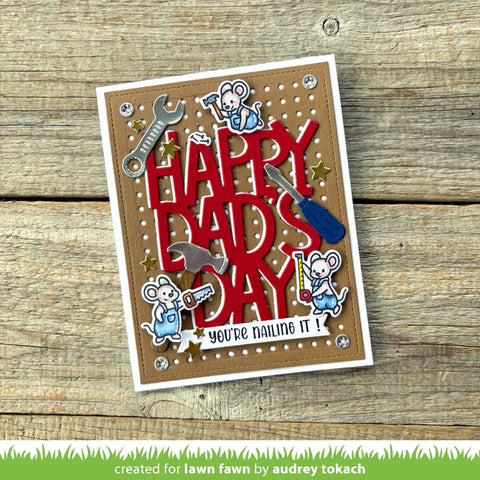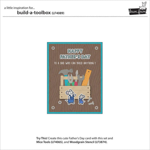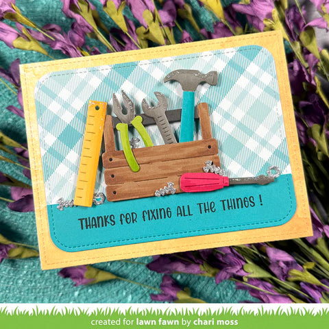 Coordinating set ideas: Combine with your favorite handy mouse from Mice Tools and Mice Tools Add-On for a sweet addition. Keep it clean and simple by adding tool-themed sentiments from Henry’s Build-A-Sentiment: Tools too. Craft with your favorite colors of cardstock (shiny is super fun) or patterned paper for a custom look every time. Try adding your favorite flower blooms to the tool box for an amazing garden themed spin! The possibilities are adorably endless!