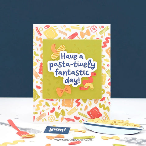 Serve up smiles with the new Lotsa Pasta Turnabout™ Stamp Set! This deliciously fun Turnabout features a mix of classic pasta shapes that create a playful background for your cards in just four turns. There are also a number of perfectly punny sentiments to help complete your carby creations. Coordinates with the Lotsa Pasta Dies. 6" x 8". 18 stamps
