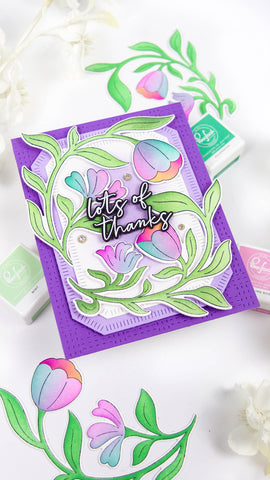 These coordinating stencils will make you feel like an artist, quickly and easily coloring in multiple images that are stamped simultaneously. Use the coordinating one-piece die to cut every design in one pass, giving you more time to create! All that’s left to do is select a sentiment!