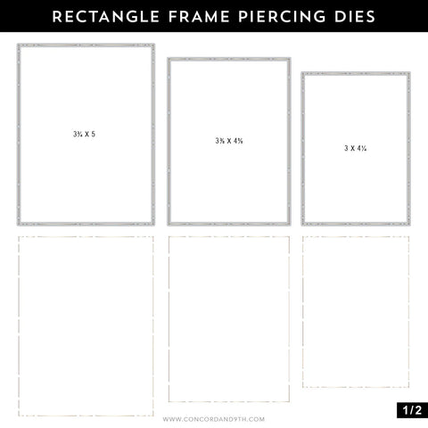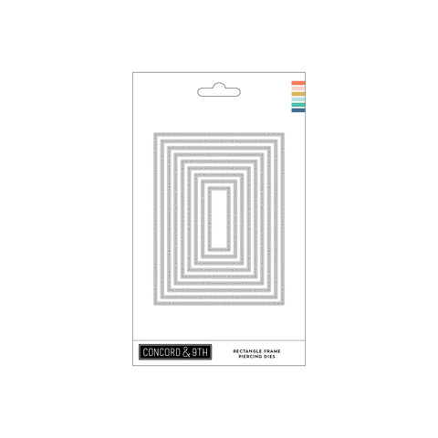 Surround your design in sweetly stitched details with the Rectangle Frame Piercing Dies! This set contains 9 rectangle piercing dies ranging in size from approximately 5/16" x 1-3/4" to 3-3/4" x 5". Each of them adds an easy-to-follow stitching guide to your card front so you can add stitched detail to any design.