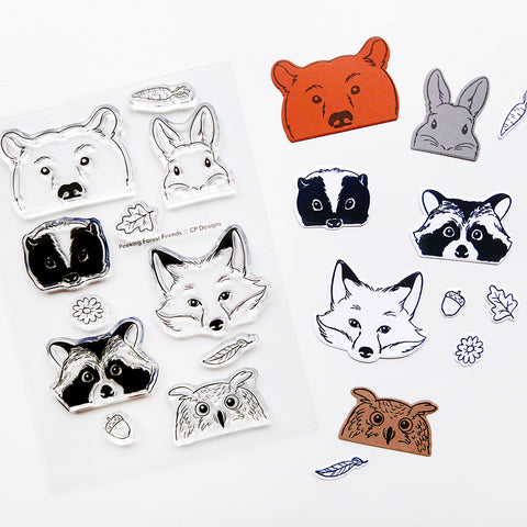 From the makers of the fan-favorite Peeking Pets, we bring you Peeking Forest Friends Stamp Set. This wildlife edition features a bear, raccoon, fox, skunk, bunny and owl and extras, ready to peek onto your next card or project.