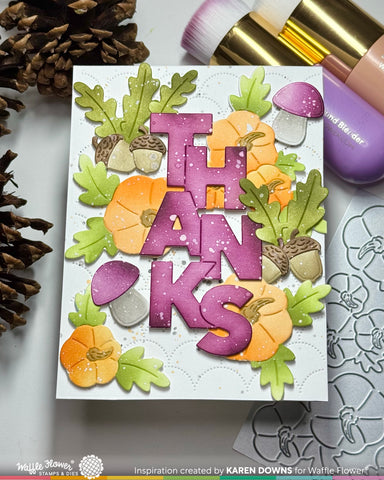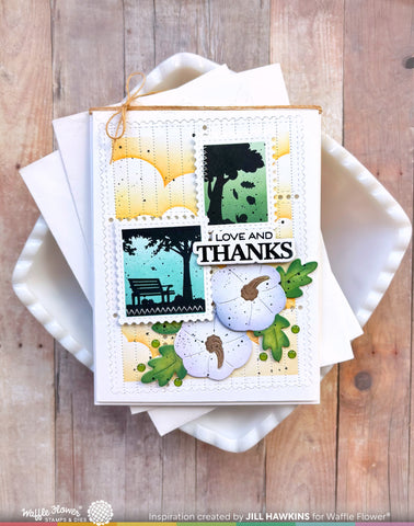 Celebrate the season with this charming background of pumpkins and leaves! The die base is exactly 4.25” x 5.5” to help you line it up easily with a standard A2 card panel. Use it on its own for a subtle textured look, or pair it with the coordinating Pumpkin Time Coloring Stencil for easy coloring. Designed to fill your card front and bring that warm autumn feeling to any project. You can also trim out the shapes to create your own arrangements.