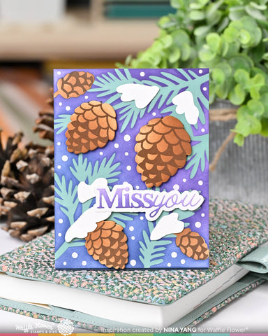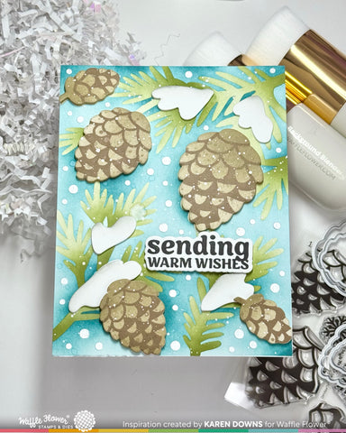 This die set cuts out the pinecones and snow shapes for the Snowcapped Pinecone Stencil and Snowcapped Pinecone Details Stamp Set. The dies are numbered to make matching the pieces to the stamp and stencil easy.