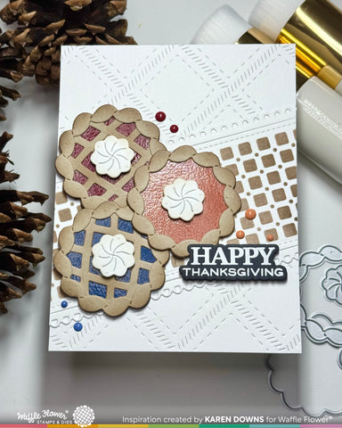 Use this stencil with the Table Runner Die to create colorful “tablecloths.” Two pattern options are included: a retro geometric weave and a cute gingham check.